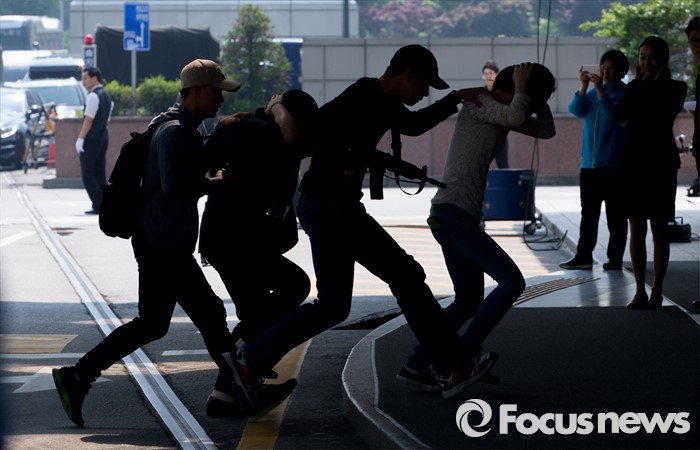 (서울=포커스뉴스) 17일 오후 서울 서초구 JW메리어트호텔 서울에서 민·관·군 관계자들이 2016 재난대응 안전한국훈련을 하고 있다.