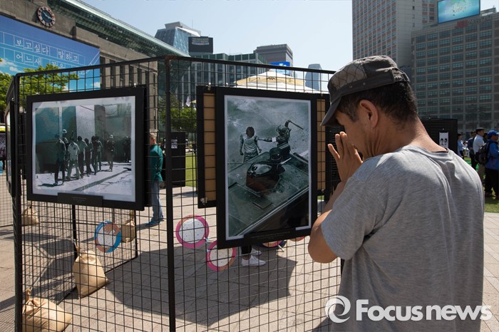 | △ 추모 사진전 바라보는 시민 |