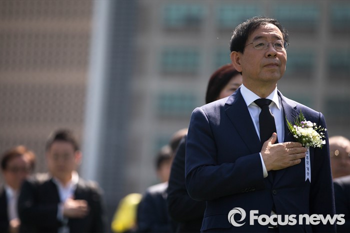 (서울=포커스뉴스) 18일 오전 서울 중구 서울시청 앞 광장에서 열린 5.18 민주화운동 기념식에 박원순 서울시장이 참석해 있다.