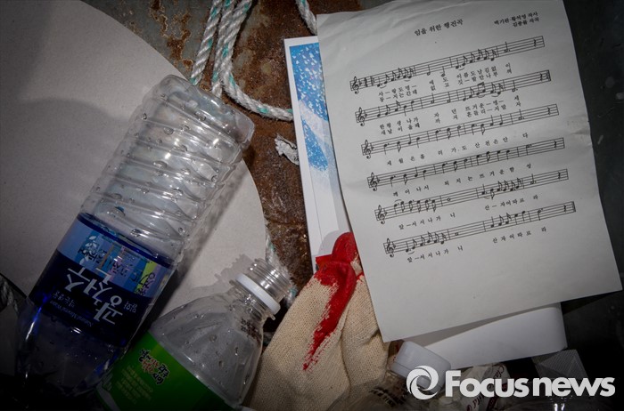 (광주=포커스뉴스) 36주년 5·18민주화운동 기념식이 거행된 18일 오전 광주 북구 운정동 5·18민주묘지 행사장 쓰레기통에 '임을 위한 행진곡' 악보가 버려져 있다.
