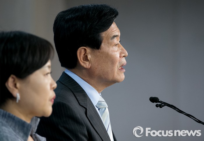 (서울=포커스뉴스) 서상기(오른쪽) 새누리당 의원과 송희경 당선인이 18일 오후 서울 여의도 국회 정론관에서 국방부가 준비 중인 이공계 대체복무 폐지 계획과 관련 현장의견 청취 및 당·정간 논의 필요성 등을 전하는 기자회견을 하고 있다.