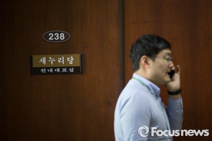 (서울=포커스뉴스) 정진석 새누리당 원내대표가 지난 17일 비대위·혁신위 추인 무산 사태가 벌어지자 지역구인 공주로 자리를 옮겨 칩거에 돌입했다. 18일 오후 서울 여의도 국회 새누리당 원내대표실 문이 굳게 닫혀 있다.