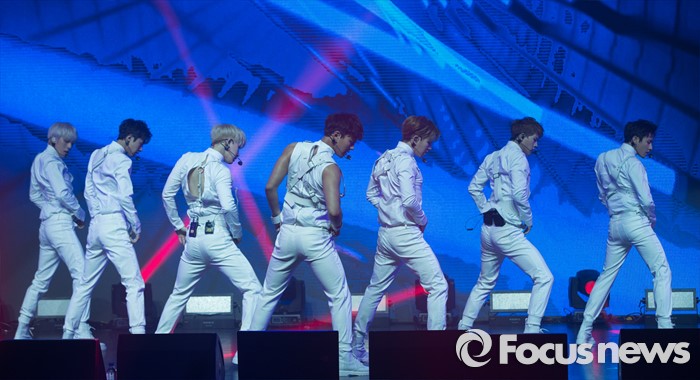 (서울=포커스뉴스) 18일 오후 서울 광진구 예스24 라이브홀에서 열린 아이돌그룹 몬스타엑스의 세번째 미니앨범 'THE CLEAN PART. 1 LOST' 발표 쇼케이스에 참석한 멤버들이 신곡 '걸어l'의 무대를 선보이고 있다.