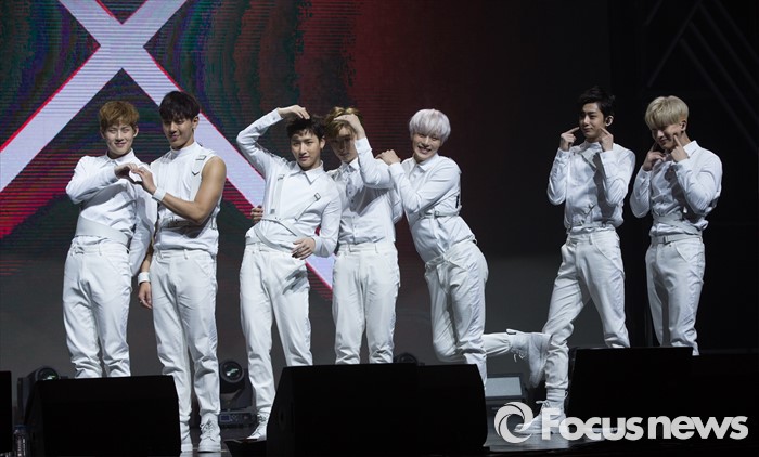 (서울=포커스뉴스) 18일 오후 서울 광진구 예스24 라이브홀에서 열린 아이돌그룹 몬스타엑스의 세번째 미니앨범 'THE CLEAN PART. 1 LOST' 발표 쇼케이스에 참석한 멤버들이 포토타임을 갖고 있다.