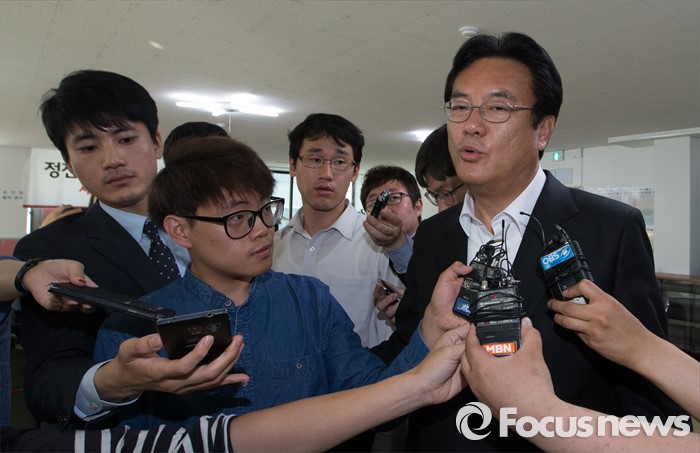 (공주=포커스뉴스) 정진석 새누리당 원내대표가 18일 오후 충남 공주 지난 선거 당시 사용했던 선거사무소에서 측근들과 논의중 잠시 사무실을 나서며 취재진의 질문에 답변하고 있다.