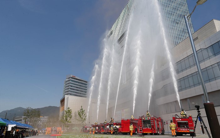 (강원=포커스뉴스) 18일 강원도 원주 한국관광공사에서 한국관광공사, 원주시, 원주경찰서, 군부대 등 유관기관 32개 기관이 참여한 가운데 2016년 재난대응 안전한국훈련 및 긴급구조종합훈련’이 열리고 있다. 이날 김종덕 문체부 장관, 정창수 한국관광공사 사장, 원창묵 원주시장이 참석했다. <사진제공=문화체육관광부>