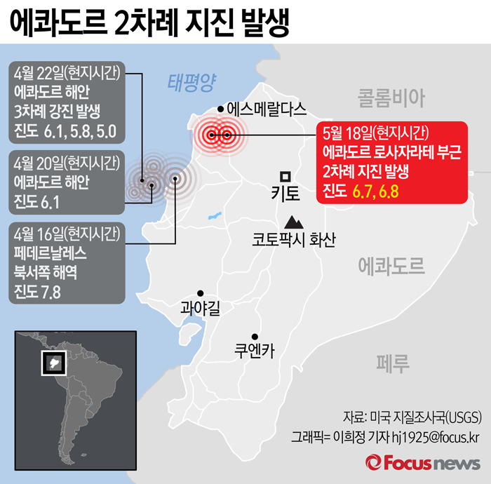 | △ [그래픽] 에콰도르 2차례 지진 발생 |