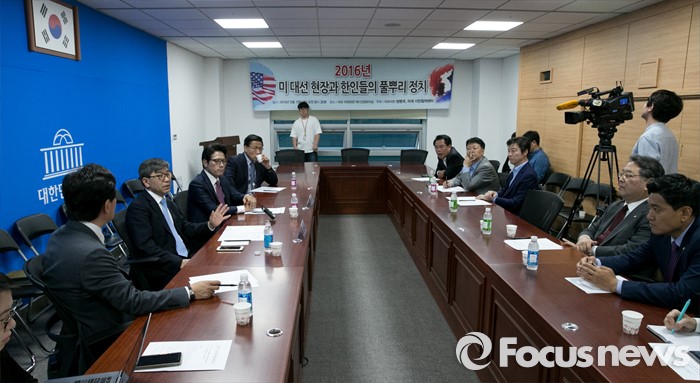 (서울=포커스뉴스) 19일 오전 서울 여의도 국회 의원회관에서 열린 '2016년 미국 대선 현장과 한인들의 풀뿌리 정치' 세미나에 참석한 김동석 미국시민참여센터 상임이사가 발언하고 있다.