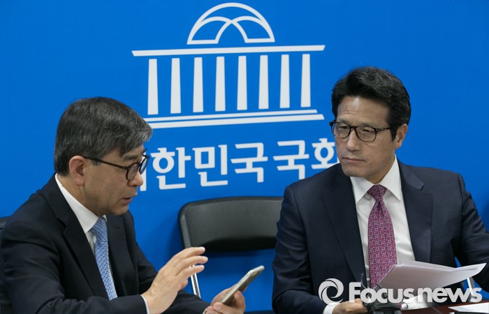 (서울=포커스뉴스) 19일 오전 서울 여의도 국회 의원회관에서 열린 '2016년 미국 대선 현장과 한인들의 풀뿌리 정치' 세미나에 참석한 정병국(오른쪽) 새누리당 의원이 김동석 미국시민참여센터 상임이사와 대화하고 있다.