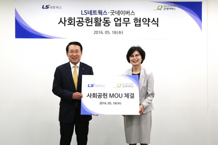 전날 서울 영등포 굿네이버스회관에서 개최된 체결식에는 이경범 LS네트웍스 대표이사와 굿네이버스 김인희 부회장 등이 참석했다.