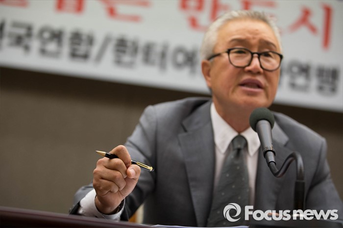 (서울=포커스뉴스) 19일 오전 서울 종로구 프레스센터에서 열린 '성매매 특별법 헌재 판결에 대한 성 노동자 기자회견'에 참석한 강현준 한터전국연합대표가 발언하고 있다.