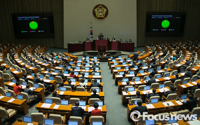(서울=포커스뉴스) 19일 오전 서울 여의도 국회에서 열린 342회 국회(임시회) 1차 본회의에서 의료사고 피해구제 및 의료분쟁 조정 등에 관한 법률 일부개정법률안(대안)이 재석 192인 중 찬성 183인, 반대 2인, 기권 7인으로 통과되고 있다.