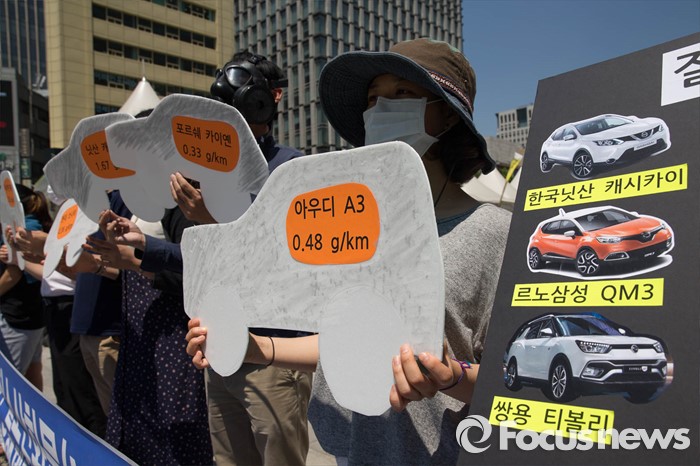 (서울=포커스뉴스) 환경단체가 질소산화물 배출기준치를 초과한 경유차 운행제한을 촉구하는 기자회견을 열고 환경부에 대책 마련을 요구했다.