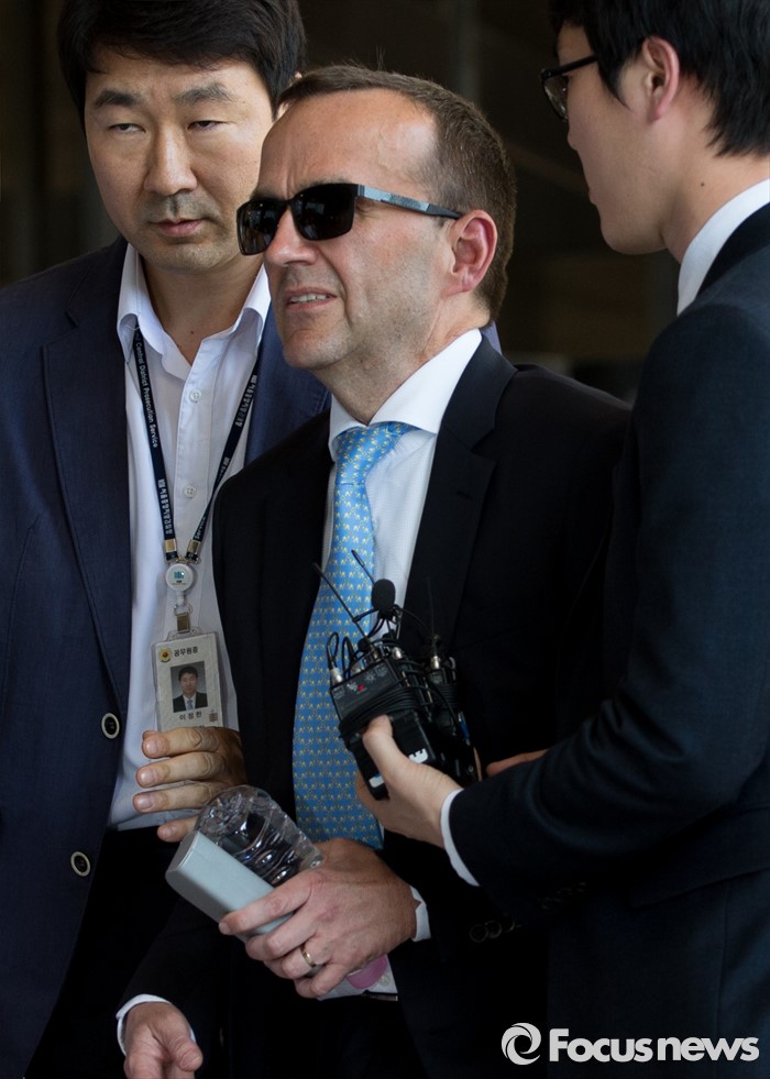 (서울=포커스뉴스) 울리히 호스터바흐 옥시 코리아 재무담당 이사가 소환조사를 받기 위해 19일 오후 서울중앙지방검찰청으로 들어서고 있다.