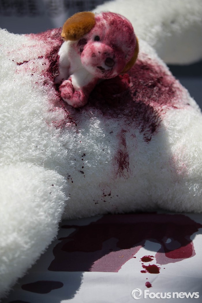 (서울=포커스뉴스) 19일 오후 서울 종로구 정부서울청사앞에서 동물자유연대 및 시민단체들이 강아지 공장 문제 해결을 촉구하며 퍼포먼스를 하고 있다.