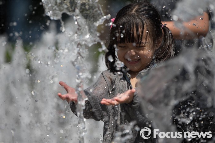 (서울=포커스뉴스) 서울의 낮 기온이 30도를 넘는 19일 오후 서울 광화문광장 분수대에서 아이들이 물놀이를 즐기고 있다.