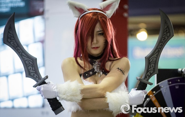 (고양=포커스뉴스) 19일 오후 경기 고양시 킨텍스 제1전시관에서 열린 2016 플레이엑스포 부스의 모델이 포즈를 취하고 있다.
