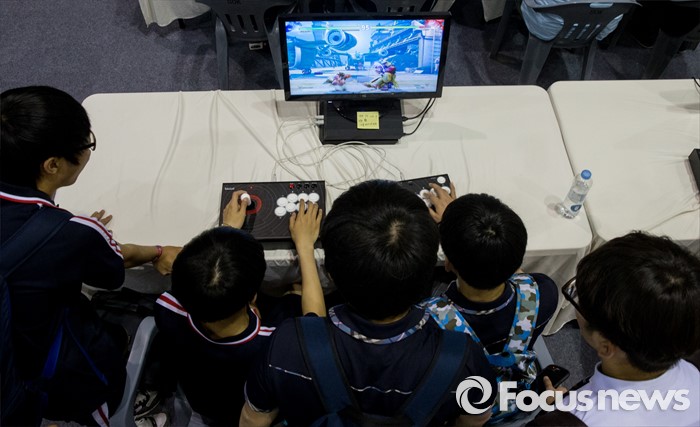 (고양=포커스뉴스) 19일 오후 경기 고양시 킨텍스 제1전시관에서 열린 2016 플레이엑스포를 찾은 관람객들이 게임을 즐기고 있다.
