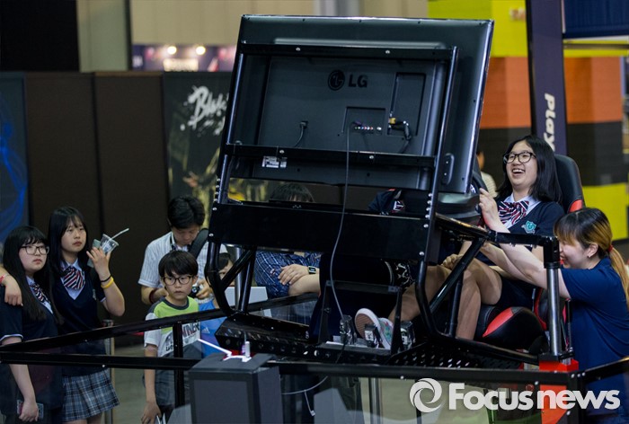 (고양=포커스뉴스) 19일 오후 경기 고양시 킨텍스 제1전시관에서 열린 2016 플레이엑스포를 찾은 관람객들이 게임을 즐기고 있다.