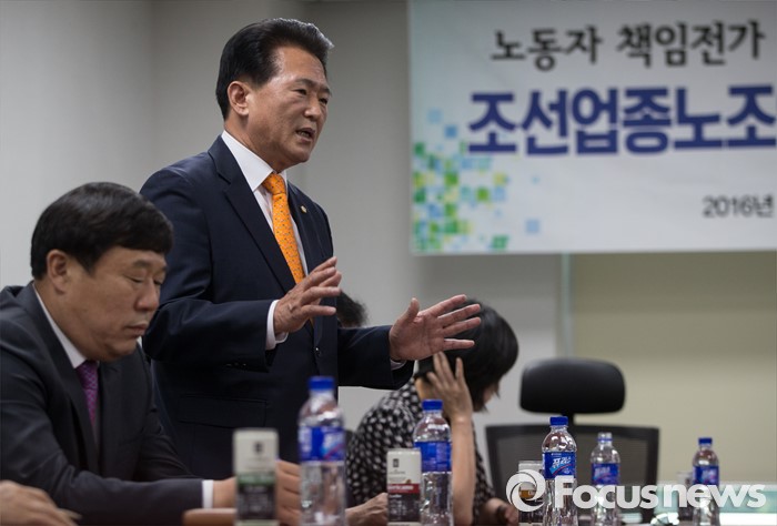 (서울=포커스뉴스) 김한표 새누리당 의원이 19일 오후 서울 여의도 국회 의원회관에서 열린 조선업종노조연대 대표자들과 각 정당 의원들 간담회에서 발언하고 있다.