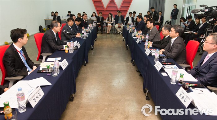 (서울=포커스뉴스) 정재찬 공정거래위원회 위원장이 19일 오후 서울 강남구 위메프 본사에서 열린 '전자상거래 업계대표 간담회'에 참석해 모두발언 하고 있다.