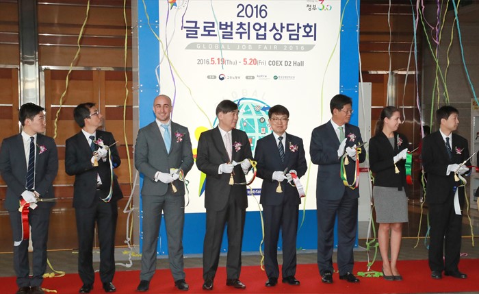 (서울=포커스뉴스) 고영선 고용노동부 차관이 19일 서울 삼성동 코엑스에서 열린 글로벌 취업상담회에 참석, 테이프 커팅시을 하고 있다. <사진제공=고용노동부>