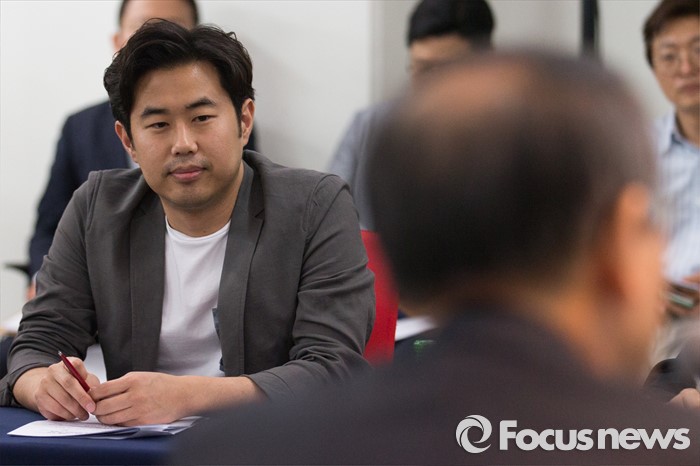 (서울=포커스뉴스) 임지훈 카카오 대표이사가 19일 오후 서울 강남구 위메프 본사에서 열린 '전자상거래 업계대표 간담회'에 참석해 정재찬 공정거래위원회 위원장의 모두발언을 듣고 있다.