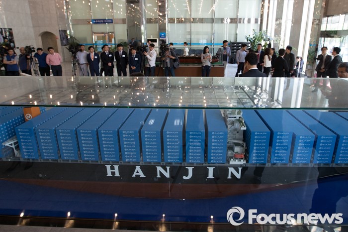(서울=포커스뉴스) 한진해운의 채무조정을 위한 첫 사채권자 집회가 열린 19일 오후 서울 영등포구 한진해운 본사 로비에 취재진들이 대기하고 있다.