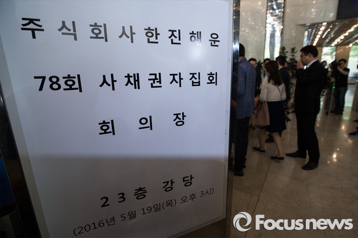 (서울=포커스뉴스) 19일 오후 서울 영등포구 한진해운 본사에서 열린 한진해운의 채무조정을 위한 첫 사채권자 집회에 사채권자들이 출석을 등록하고 있다.