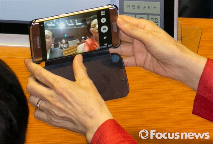 (서울=포커스뉴스) 19일 오후 서울 여의도 국회에서 열린 342회 국회(임시회) 1차 본회의에 참석한 배덕광(왼쪽), 류지영 새누리당 의원이 기념촬영을 하고 있다.