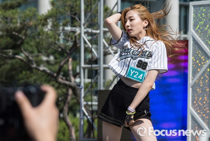 (서울=포커스뉴스) 19일 오후 서울 종로구 성균관대 캠퍼스에서 걸그룹 우주소녀의 멤버 은서가 'Y24 스쿨어택' 행사에 참여해 무대를 선보이고 있다.