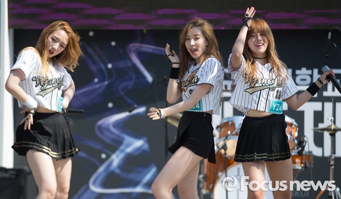 (서울=포커스뉴스) 19일 오후 서울 종로구 성균관대 캠퍼스에서 걸그룹 우주소녀의 멤버들이 'Y24 스쿨어택' 행사에 참여하고 있다.