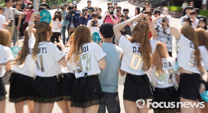 (서울=포커스뉴스) 19일 오후 서울 종로구 성균관대 캠퍼스에서 걸그룹 우주소녀의 멤버들이 'Y24 스쿨어택' 행사에 참여하고 있다.