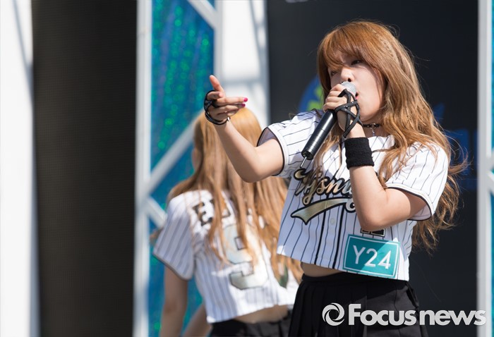 (서울=포커스뉴스) 19일 오후 서울 종로구 성균관대 캠퍼스에서 걸그룹 우주소녀의 멤버 엑시가 'Y24 스쿨어택' 행사에 참여해 무대를 선보이고 있다.