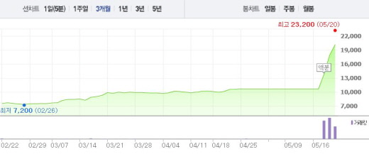 엠에스씨는 20일 오전 9시18분 현재 전일 대비 17.32%(3100원) 상승한 2만1000원에 거래되고 있다. 18일에는 29.58%, 19일에는 29.71%의 상승폭을 기록하며 뚜렷한 상승 곡선을 그리고 있다.