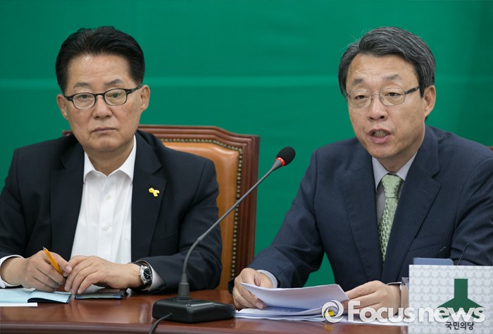 (서울=포커스뉴스) 김성식(오른쪽) 국민의당 정책위의장이 20일 오전 서울 여의도 국회에서 열린 최고위원회의에 참석해 발언하고 있다. 왼쪽은 박지원 원내대표.
