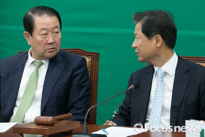 (서울=포커스뉴스) 천정배(오른쪽) 국민의당 공동대표와 박주선 최고위원이 20일 오전 서울 여의도 국회에서 열린 최고위원회의에 참석해 대화하고 있다.