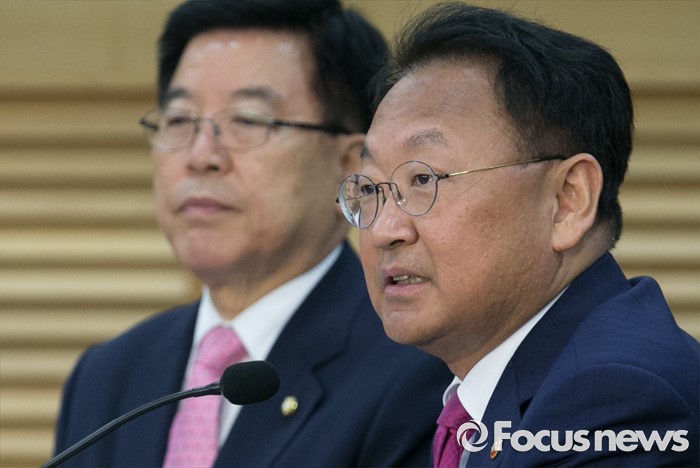 (서울=포커스뉴스) 20일 오전 서울 여의도 국회 의원회관에서 열린 1차 민생경제현안점검회의에 참석한 유일호(오른쪽) 경제부총리 겸 기획재정부 장관이 발언하고 있다.
