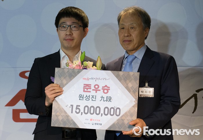 (서울=포커스뉴스) 박치문 한국기원 부총재와 원성진 9단이 20일 오전 서울 종로구 플라자호텔에서 열린 한국기원 맥심커피배 시상식에 참석해 기념촬영을 하고 있다.