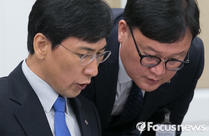 (서울=포커스뉴스) 20일 오전 서울 여의도 국회 귀빈식당에서 충청남도 주최로 열린 국회의원 초청 정책설명회에 참석한 안희정(왼쪽) 도지사와 조원갑 정책기획관이 대화하고 있다.