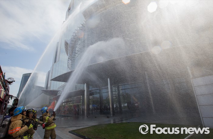 (서울=포커스뉴스) 20일 오후 서울 강남구 코엑스에서 열린 '2016 재난대응 안전한국훈련'에 참여한 소방대원들이 테러대응훈련을 펼치고 있다.