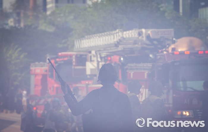 (서울=포커스뉴스) 20일 오후 서울 강남구 코엑스에서 열린 '2016 재난대응 안전한국훈련'에 참여한 훈련병력들이 테러대응훈련을 펼치고 있다.
