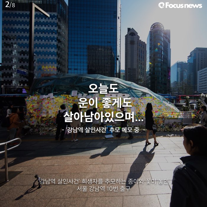 강남역 10번 출구 인근이 종이로 뒤덮이고 있습니다. 벽에 붙은 종이 내용은 크게 두 가지입니다. 먼저 지난 17일 '여자'라는 이유로 인근 노래방 화장실에서 살해당한 23살 직장인 하 모씨를 추모하는 것.그리고 '여자'기 때문에 느낄 수밖에 없는 공포와 분노에 대한 것.