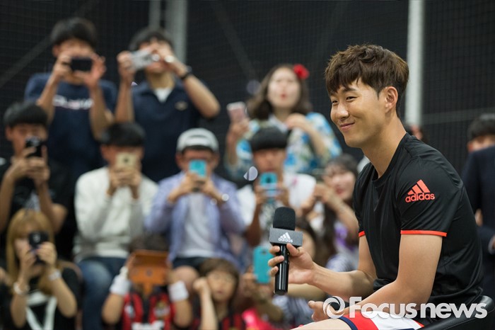 (서울=포커스뉴스) 손흥민이 20일 오후 서울 용산구 아이파크몰 풋살경기장에서 열린 아디다스 손흥민 팬미팅 및 사인회에서 팬들과 근황토크를 하고 있다.