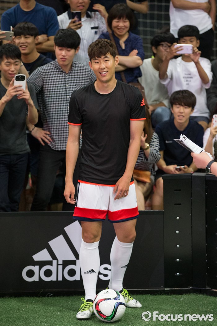 (서울=포커스뉴스) 손흥민이 20일 오후 서울 용산구 아이파크몰 풋살경기장에서 열린 아디다스 손흥민 팬미팅 및 사인회에서 팬들과 1대1 경기전 몸을 풀고 있다.
