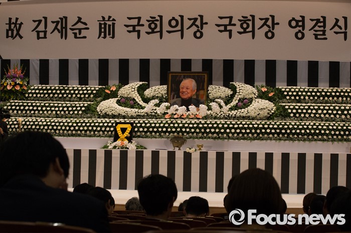 (서울=포커스뉴스) 21일 오전 서울 여의도 국회에서 엄수된 故 김재순 전 국회의장 국회장 영결식.