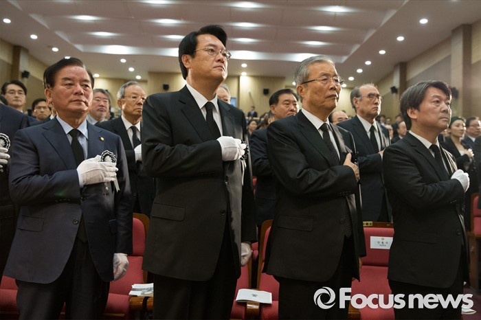 | △ 고 김재순 전 국회의장 영결식 참석한 3당 |