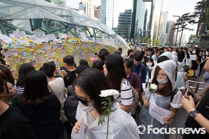 | △ 강남역 10번출구를 지나는 추모 행렬 |