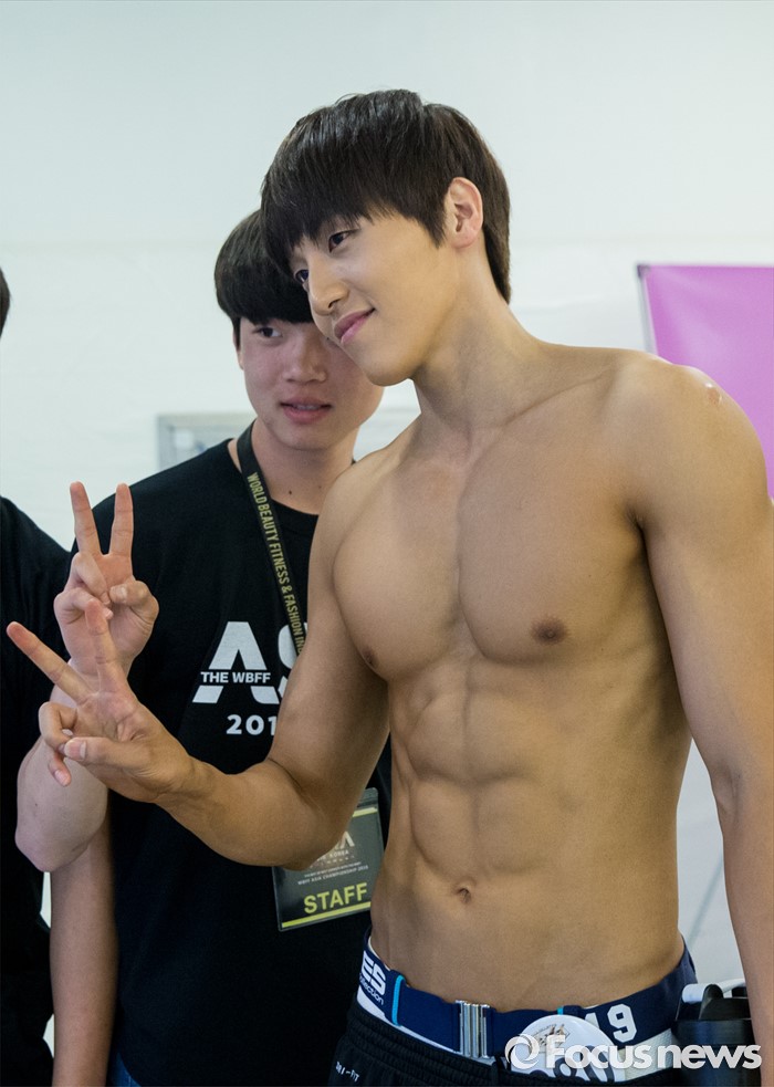 (서울=포커스뉴스) 22일 오전 서울 서초구 더케이호텔 아트홀에서 열린 피트니스 대회 'WBFF 아시아 챔피언십'에 참가한 개그맨 류근지가 관계자와 함께 기념촬영 하고 있다.