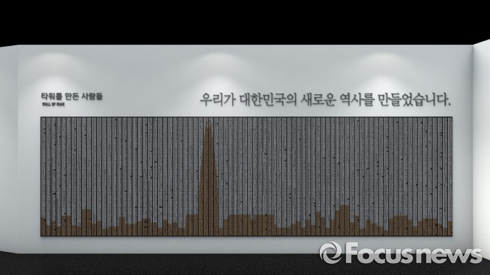 롯데월드타워는 홍보관 기념물과 함께 타워 외부에 설치할 기념 조형물 건립도 추진한다.서울 송파구 롯데월드타워(제2롯데월드) 5층 홍보관 벽면에는 월드타워 공사 현장에서 100일 이상 일한 근로자 총 8000여명의 이름이 새겨진다.<사진제공=롯데물산>